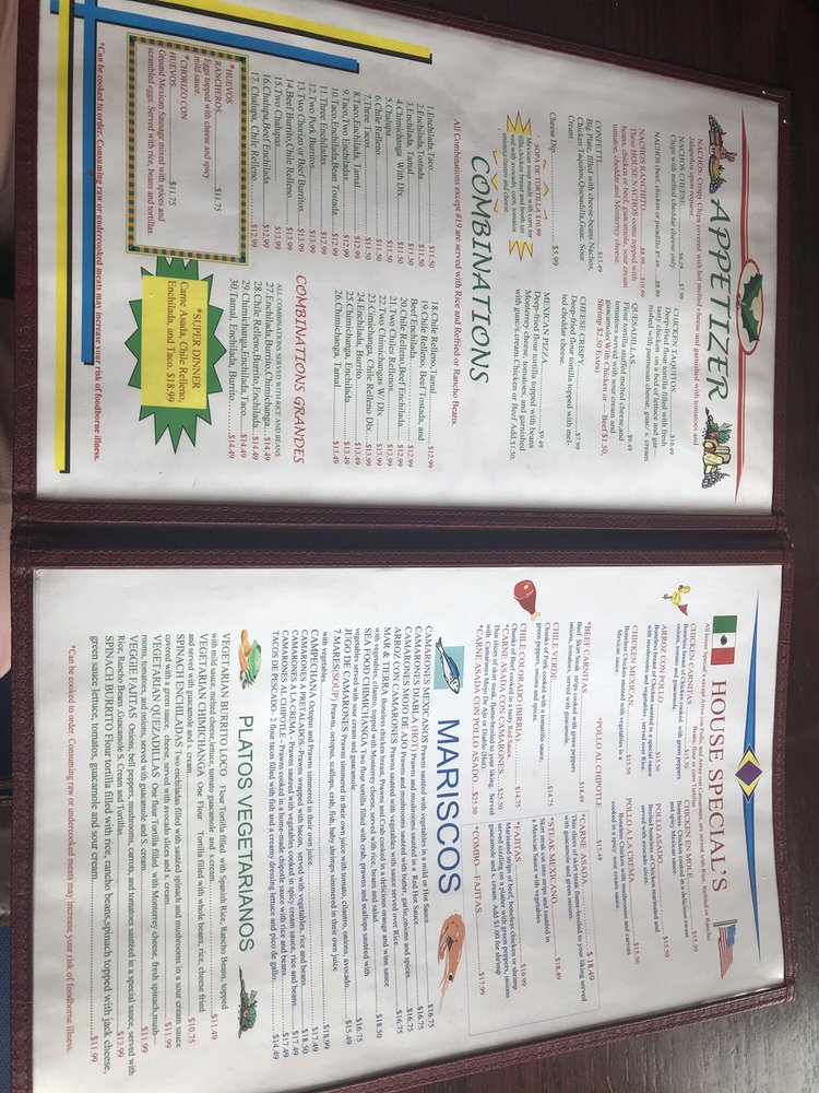 All combinations are served with rice and refried or rancho beans. Choice of meat chicken, picadillo shredded beef, ground beef, pork. Tamales chicken or pork.